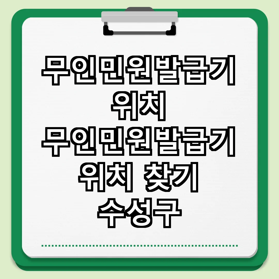 수성구에는 무인민원발급기가 다양한 장소에 설치되어 있어 주민들이 필요한 서류를 쉽게 발급받을 수 있습니다. 이러한 기계는 운영 시간에 따라 이용할 수 있는 서비스가 달라질 수 있으므로, 사전에 위치와 시간을 확인하는 것이 좋습니다. 특히, 수성구 내의 무인민원발급기는 편리한 위치에 있어 접근성이 뛰어납니다. 주민 여러분의 편의를 위해 무인민원발급기의 위치와 사용법을 알아보는 것이 중요합니다.     무인민원발급기 위치 추천 … 더 읽기